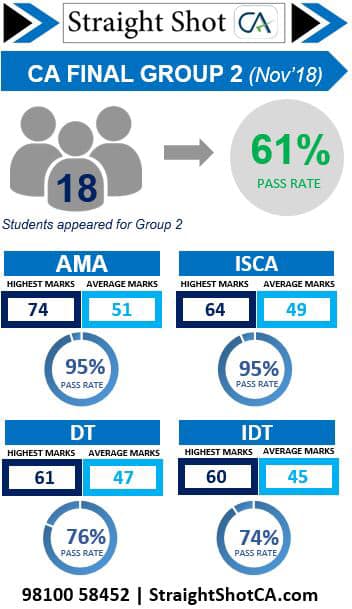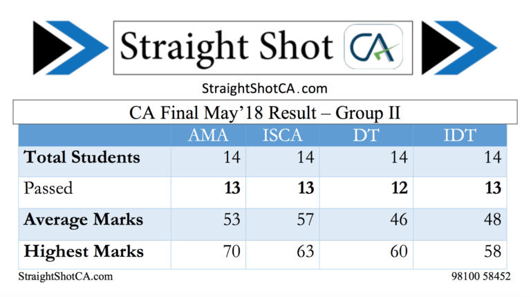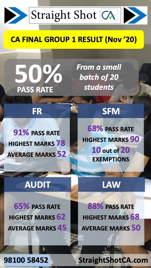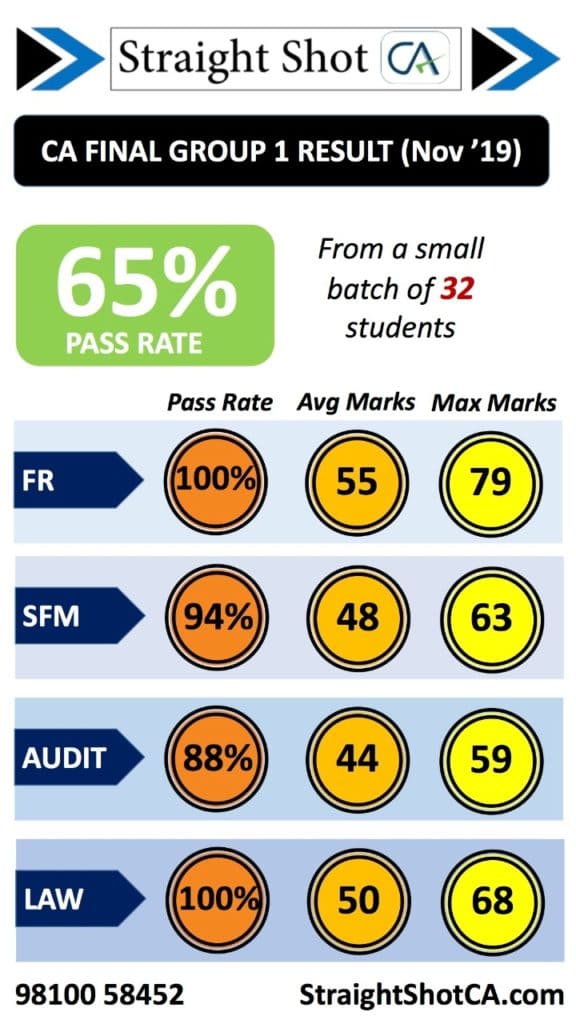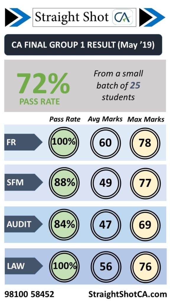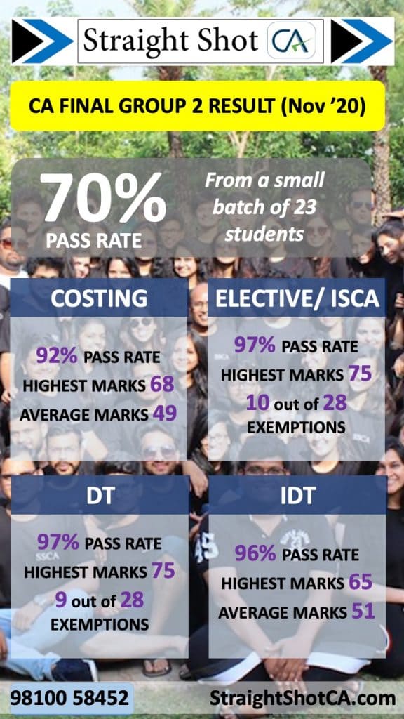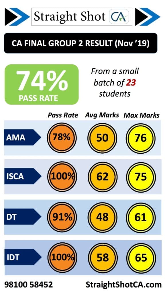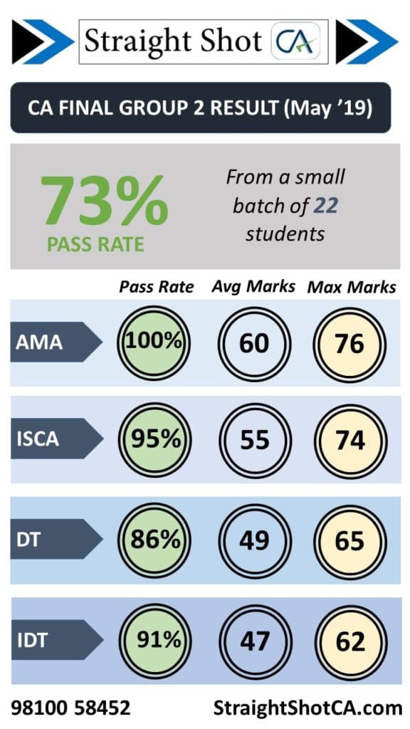 We had a spectacular result in CA Final Group-II. There were 13 students studying the complete group with us and 12 of them passed!